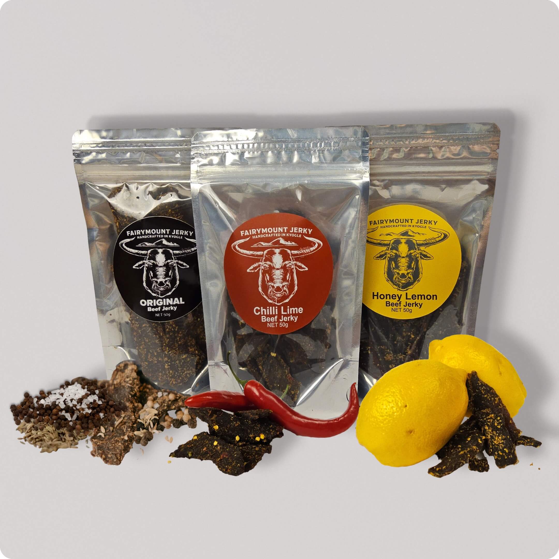 "Beef Jerky Chilli Lime is delicious with a mild spice and a lemon/lime touch. I like it very much. Idea of having this and a variety of spicy chilli 🌶 hot...Thxs FairymountTeam. Support Local and Dreams come through!"
